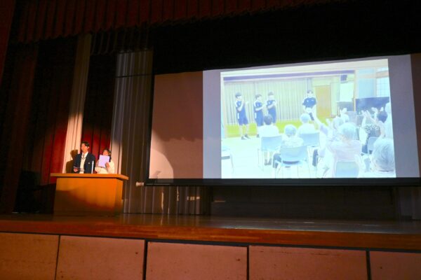 はじめに学校長の三浦先生から挨拶があり、次に現役の東海学園高校生から、東海学園高校についてさまざまな視点から魅力が語られました。 ボランティア部からの活動報告もありました。